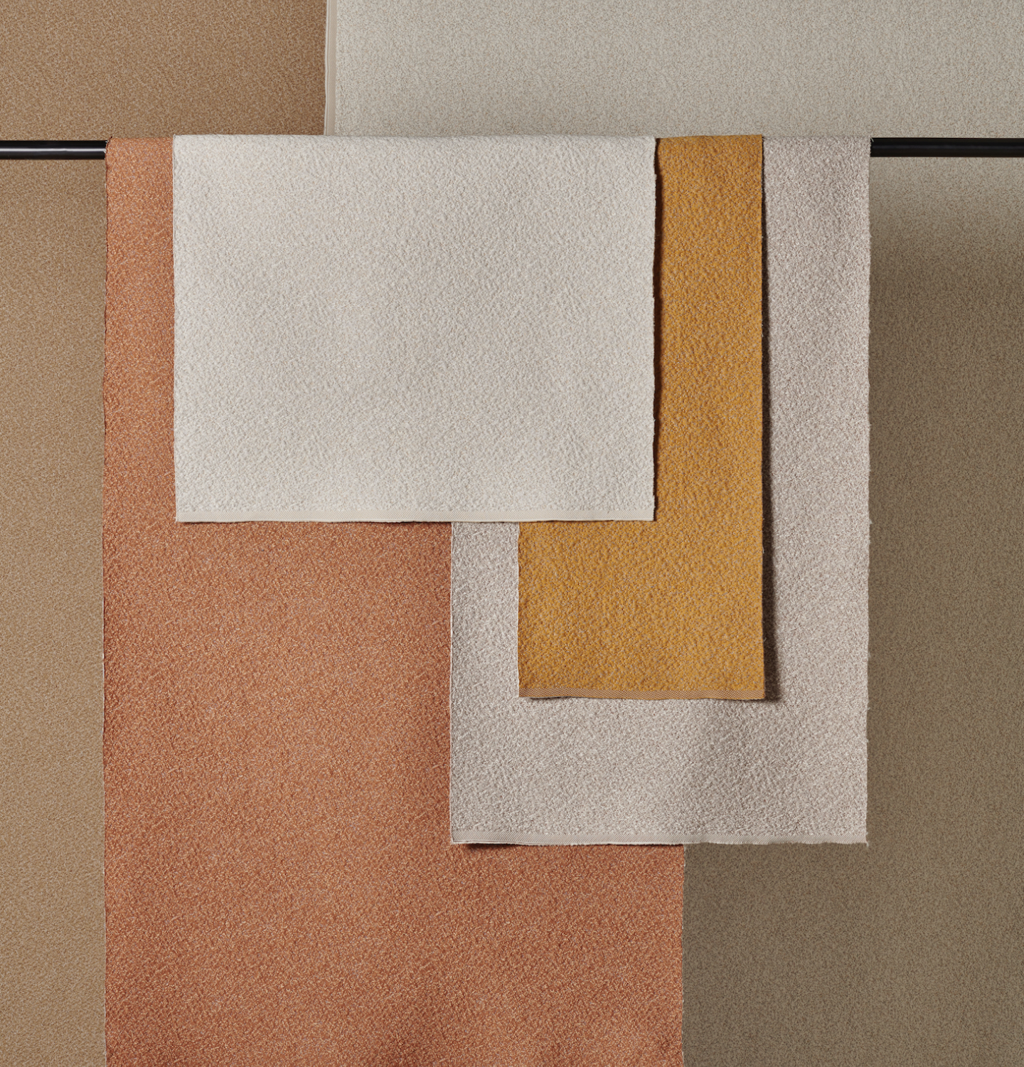 A fabric that is a world in itself, englobing visions of nature into its organic texture, composed of up to four differently coloured yarns. The effect is rich and irregular, with textures reminiscent of moss, rocks and waves. Fantastic compositions that become a reality.