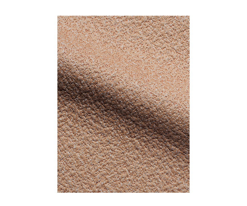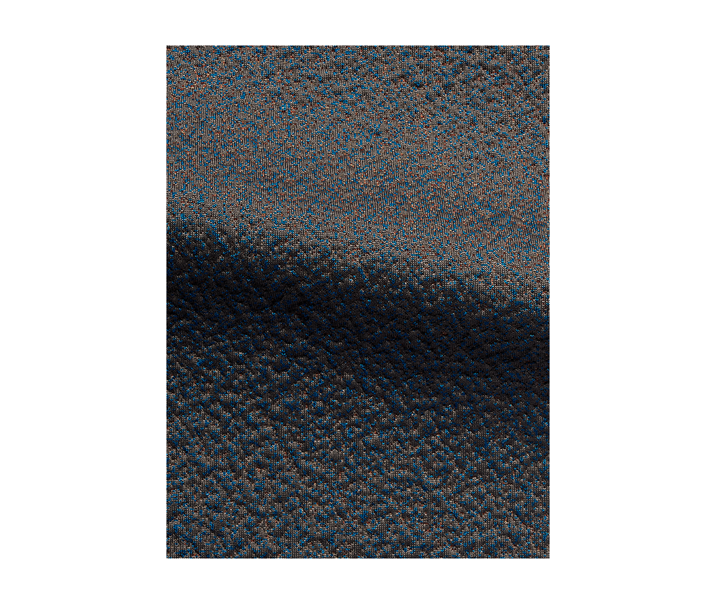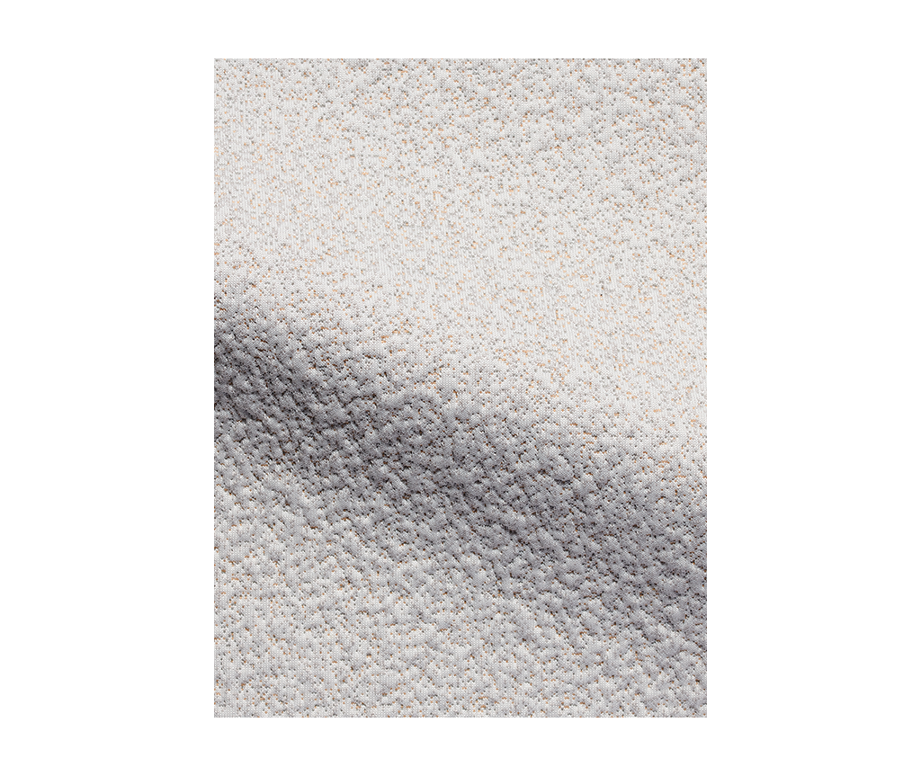 Elasticity is constructed with a bicolour yarn that unites into a subtly sprinkled melange. Knitted flat, the fabric embraces seating organically and gives a made-to-measure impression, ideal for upholstering.